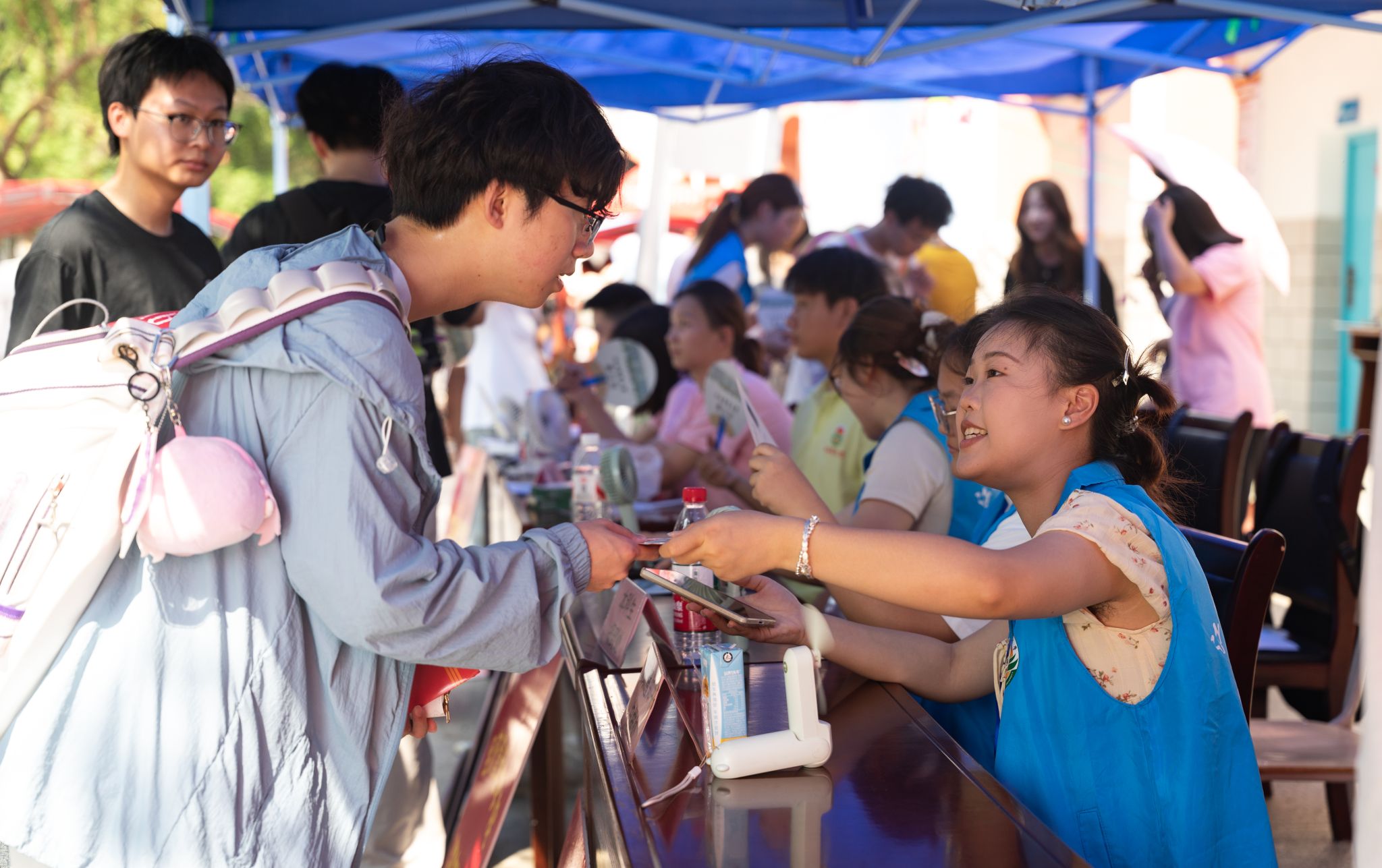 为帮助新生顺利完成报到、入住等流程,上午7时许,学院迎新志愿者早已在校园各迎新点、报到点、宿舍楼等地等候,身着统一服装,以饱满的精神状态迎接每一位新同学。学院设置“一对一”对接岗和党员帮扶岗,从接站、搬运行李、办理报到手续,到带领熟悉校园、讲解学院文化,用耐心与热情为新生提供全程引导服务。